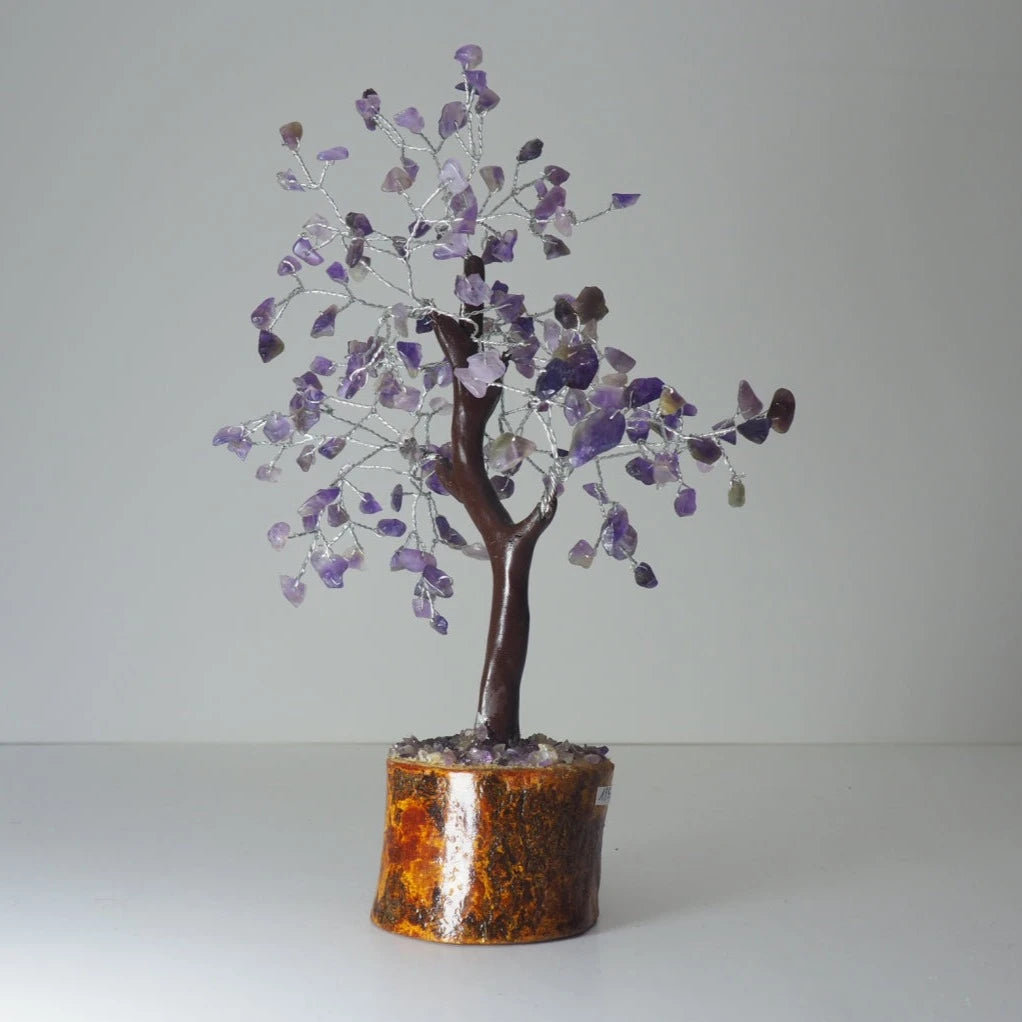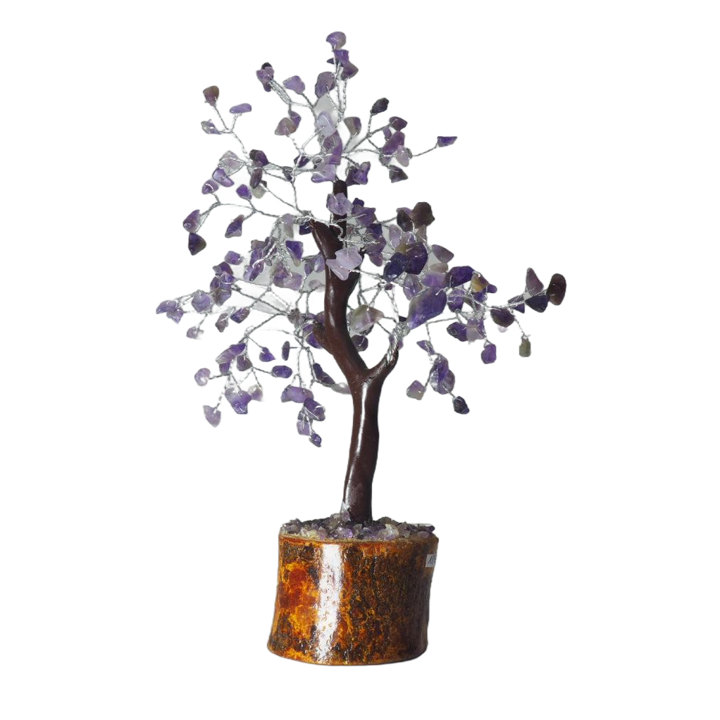 Este Bonsái Amatista tiene una base de madera que le da un toque natural y elegante. La amatista es conocida por sus propiedades calmantes y equilibrantes, lo que lo convierte en un regalo perfecto para aquellos que buscan la armonía en su hogar.